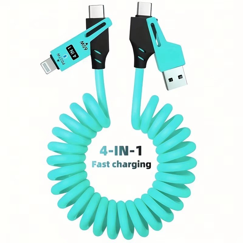 65W Zinc Alloy Spring 4 in 1 USB Charging Cable